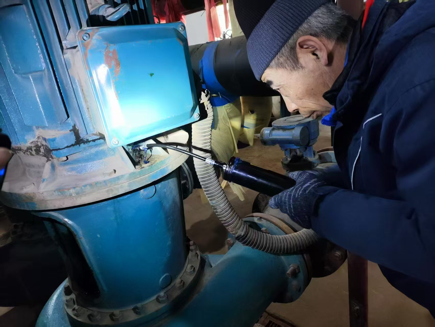 2024年12月23日晚上8點多,萬惠站內(nèi)失水掉壓,蘇昭和同事們立即沿線進行排查,找到2處跑水點。在緊張的搶修過程中,蘇昭白天配合挖機作業(yè)、抽排污水,晚上協(xié)助檢修所員工下地溝為DN300的管網(wǎng)打上2個大抱卡。經(jīng)過一天一夜的連續(xù)奮戰(zhàn),終于在24號凌晨2:00完成了搶修和回填,92個商鋪恢復(fù)了供熱。由于天氣寒冷,蘇昭和同事們身上結(jié)出了冰碴,手也凍僵了?!懊ζ饋砭皖櫜涣四敲炊嗔?,問題解決了才能松一口氣。”他說。