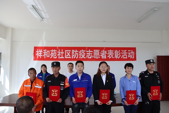 在這次表彰活動(dòng)中,共授予23名志愿者和物業(yè)工作人員榮譽(yù)證書,祥和苑公租房項(xiàng)目經(jīng)理隗公樸接過鮮紅的榮譽(yù)證書說:在這次疫情防控工作中,祥和苑社區(qū)黨組織和物業(yè)公司黨支部對項(xiàng)目處工作人員的關(guān)愛,是物業(yè)人不斷奮戰(zhàn)的精神動(dòng)力,有黨旗的地方就有力量,作為一名老黨員,我會牢記使命,不負(fù)榮譽(yù),不負(fù)職責(zé),帶領(lǐng)祥和苑項(xiàng)目處全體工作人員,積極配合小黑河鎮(zhèn)社區(qū)做好各項(xiàng)工作,再接再厲,守護(hù)好小區(qū)業(yè)主的健康和平安。