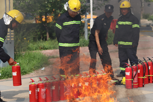 項(xiàng)目處經(jīng)理李銳詳細(xì)介紹了四公斤手提干粉滅火器的使用方法和注意事項(xiàng)。隨著第一著火點(diǎn)煙感報(bào)警器的預(yù)警聲,各組人員統(tǒng)一指揮,高效協(xié)調(diào),臨危不亂,在實(shí)戰(zhàn)中鍛煉了火場(chǎng)組織疏散程序以及火場(chǎng)逃生、自救互救、搶險(xiǎn)滅火的能力。