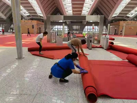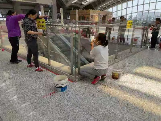 由于東客站長時(shí)間閑置導(dǎo)致站內(nèi)外車道、廣場雜草叢生,站內(nèi)通道、大廳地面及辦公區(qū)域灰塵堆積。由于啟用時(shí)間緊、作業(yè)面積較大,城發(fā)物業(yè)公司立即組織人員、機(jī)械設(shè)備、物料用品,次日一早,工作人員入場保潔,從門前車道、廣場除草、噴藥到建筑外立面玻璃擦拭;從站內(nèi)地面、辦公區(qū)域清潔到客車入站處場地及道路沖洗,隨處都能看到工作人員的身影。原本需要一周的工作,在工作人員的不懈努力下,僅用三天就完成了集團(tuán)公司安排的保潔工作任務(wù)。使保潔面積2.3萬平米的現(xiàn)場面貌煥然一新,具備了投入使用的條件,也體現(xiàn)了物業(yè)公司能打硬仗、敢于攻堅(jiān)的企業(yè)精神。