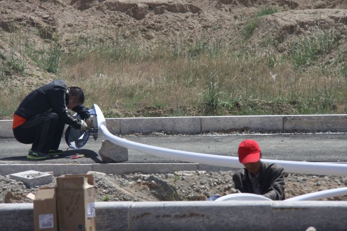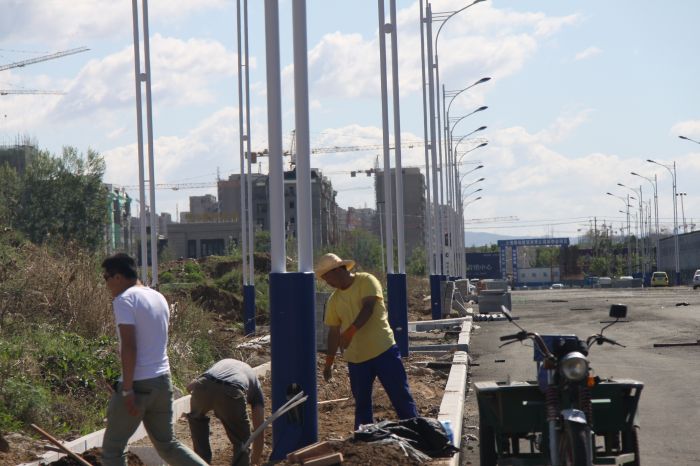 規(guī)劃緯四路路燈施工現場。張亞利攝