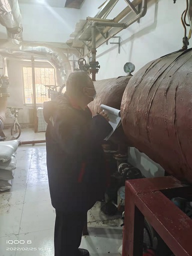 新華東分公司巨華朗域熱力站是受小區(qū)封控管理影響的第一個(gè)熱力站,公司臨時(shí)組建的運(yùn)營(yíng)小組的李文霞從17日小區(qū)封控以來(lái),一直在熱力站值守。2月24日,筆者來(lái)到長(zhǎng)樂(lè)宮供暖所,看到所長(zhǎng)李瑋潔正在和李文霞視頻通話:"每天的消殺要做好,你自己和你愛(ài)人的防護(hù)工作也要做好,站里運(yùn)行一切正常吧?你還需要什么物資嗎?"李瑋潔關(guān)切的詢問(wèn)、耐心的叮囑著。李文霞說(shuō):"站內(nèi)運(yùn)行一切正常,我每天都按照要求對(duì)站內(nèi)進(jìn)行消殺,我和我愛(ài)人也很注意防護(hù)工作,分公司委托疫情防控人員給我們送進(jìn)來(lái)的物資還有很多,請(qǐng)領(lǐng)導(dǎo)放心,我會(huì)一直堅(jiān)守在工作崗位上。" 筆者又看到一旁有位工作人員在穿防護(hù)服,李瑋潔告訴筆者:"武警小區(qū)熱力站也在封控區(qū)域,我們和疫情防控相關(guān)人員溝通后,每天由站員穿著防護(hù)服,戴著口罩、醫(yī)用手套、防護(hù)面罩進(jìn)行4次巡檢,現(xiàn)在正在穿隔離服準(zhǔn)備去巡檢的是索媛媛。"二十多分鐘后,索媛媛回來(lái),筆者看到她的隔離面罩上全都是霧氣,只見(jiàn)她熟練地將隔離服脫掉扔到指定的垃圾箱內(nèi),隨即開(kāi)始做常規(guī)的消殺。她告訴筆者:"以前看到防疫一線的醫(yī)務(wù)人員穿著防護(hù)服工作只是覺(jué)得他們很辛苦,但是自從我也需要穿防護(hù)服巡站時(shí),才有了親身的體驗(yàn),不僅防護(hù)服穿脫時(shí)不方便,而且著裝后行動(dòng)也變得不靈敏,我每次只穿半個(gè)小時(shí)左右就覺(jué)得很不舒服了,而醫(yī)護(hù)人員一穿就一整天,還不能上廁所,因此,我這點(diǎn)辛苦算不了什么。"