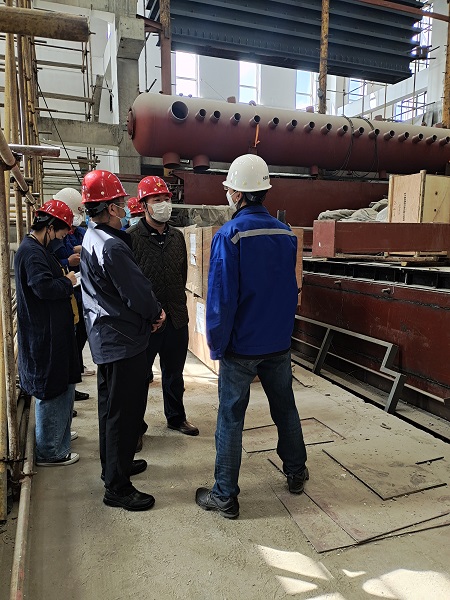 在三合村分公司200T燃煤熱水鍋爐等量替換工程現(xiàn)場,楊杰詳細(xì)聽取了工程的進展及復(fù)工復(fù)產(chǎn)工作準(zhǔn)備情況,并針對目前存在的困難和問題,現(xiàn)場辦公研究解決方案。