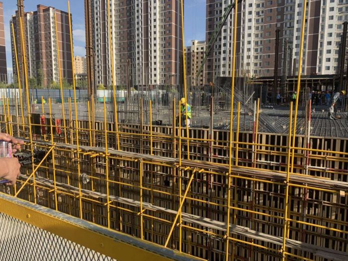 金城小區(qū)商業(yè)樓地下室原定工期為49天,但基坑開挖后受地下水的影響,需進(jìn)行降水處理。經(jīng)專家論證,創(chuàng)新的使用了基坑內(nèi)降水法,即節(jié)約工期又降低造價(jià),歷時(shí)25天完成降水。于5月4日地下室結(jié)構(gòu)施工正式開始,通過參建人員的共同努力,最終在保質(zhì)量、保安全的前提下,于6月3日順利完成了地下室結(jié)構(gòu)封頂,將工期壓縮至29天。