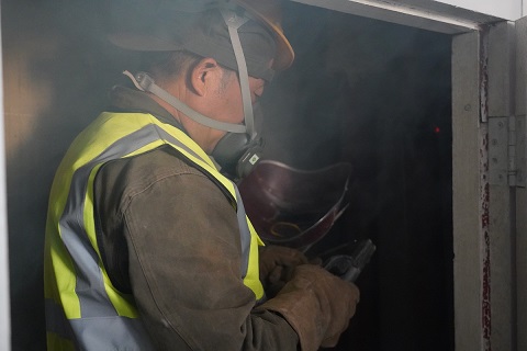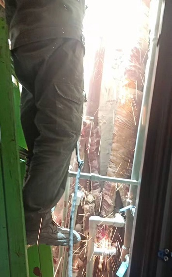 5月17日,筆者來到開天花園小區(qū)的供熱二次管網(wǎng)改造施工現(xiàn)場。在高層單元樓的管道井里,工人正在狹窄的空間里作業(yè),將單元樓道內(nèi)的立管進(jìn)行切割拆除。在施工材料現(xiàn)場,西北角堆滿了拆除下來的地溝管,部分管道腐蝕嚴(yán)重,布滿了密密麻麻的窟窿眼兒;東北角堆放了新到的管材,工人們正在進(jìn)行單元立管外表的打磨工作,打磨完成后再進(jìn)行粉刷兩遍防腐漆。