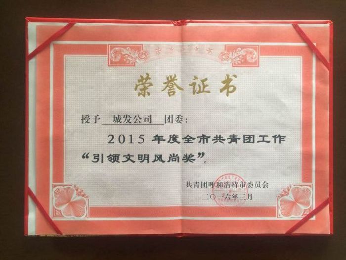 2016年3月15日,下午3時,在市政府黨政辦公大樓207會議室舉辦召開了;共青團呼和浩特市十六屆三次全委會議及市少工委五屆六次會議。會議上,全市23個團委進行了表彰。城發(fā)公司團委榮獲;全市共青團工作引領文明風尚獎、;信息工作先進獎兩個單項獎,獲得;2015年年度全市共青團工作綜合獎。