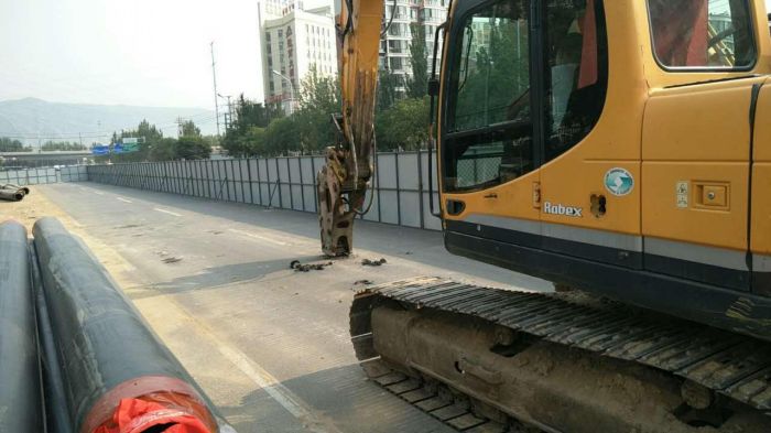 7月14日市政局下達(dá)昭烏達(dá)路哲里木路改造提升工程成吉思汗大街至北二環(huán)段供熱管網(wǎng)改遷入場通知,此段改遷項(xiàng)目分為南北兩部分。其中北段涉及管徑為DN400,溝長110米,新線位向東移位約9米,7月18日晚已完成原有管線的拆除工作,現(xiàn)溝槽已回填。新管線位已設(shè)立圍擋,正在進(jìn)行開槽。南段涉及管徑為DN450,溝長170米,新線位向東移動10米,由于工期緊,采用先裝新管線再拆除舊管線的施工方案,20日上午已開始切割新管線的路面。