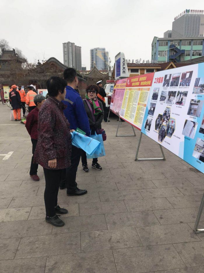 2018年3月30日上午,金橋分公司在五塔寺廣場(chǎng)參加以“深入貫徹學(xué)習(xí)習(xí)近平新時(shí)代中國(guó)特色社會(huì)主義思想,推動(dòng)平安首府建設(shè),筑牢祖國(guó)北疆安全穩(wěn)定屏障”為主題的宣傳活動(dòng)。在宣傳活動(dòng)中,金橋分公司將日常針對(duì)綜治工作的開展情況,學(xué)習(xí)十九大報(bào)告內(nèi)容、習(xí)近平新時(shí)代中國(guó)特色社會(huì)主義思想情況,通過展板以圖文并茂的形式一一展現(xiàn)。