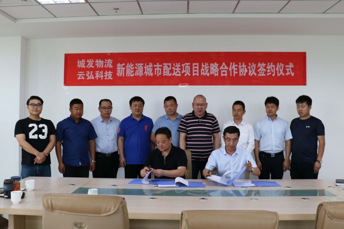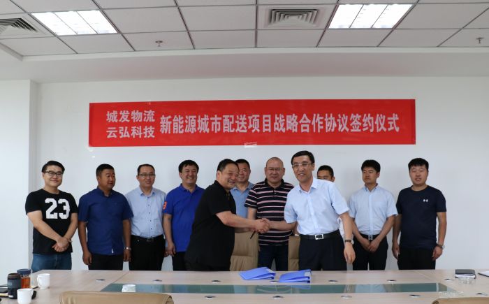 2018年5月16日下午,城發(fā)物流公司與內(nèi)蒙古云弘科技有限責(zé)任公司就新能源城市配送項(xiàng)目簽訂了戰(zhàn)略合作協(xié)議。