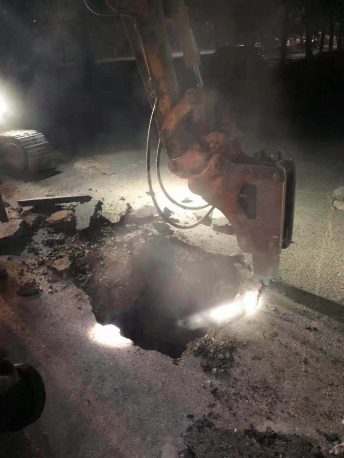 11月11日下午,中繼泵房專項高壓電閃落,1#、2#、3#循環(huán)泵因自動保護驟停。出現(xiàn)異常后,調(diào)度立即通知京能電廠降頻,檢修車間立即組織人員進行巡線,經(jīng)過15個小時不間斷排查,12日上午,發(fā)現(xiàn)如意舊網(wǎng)主線和1#站支線漏水嚴重。分公司檢修車間、運營二所和保駕護航單位迅速制定搶修方案組織搶修,經(jīng)理丁成斌、副經(jīng)理鄭紅飛親自到現(xiàn)場指導搶修工作。為準確找到失水點,搶修人員穿著隔熱服進入管溝內(nèi)查找漏點。由于漏水點管線錯綜復雜,施工難度非常大。接近管道時,發(fā)現(xiàn)漏點位置靠近井壁且管道腐蝕嚴重,壁厚較薄,采取整理外層補焊的方式進行修補。