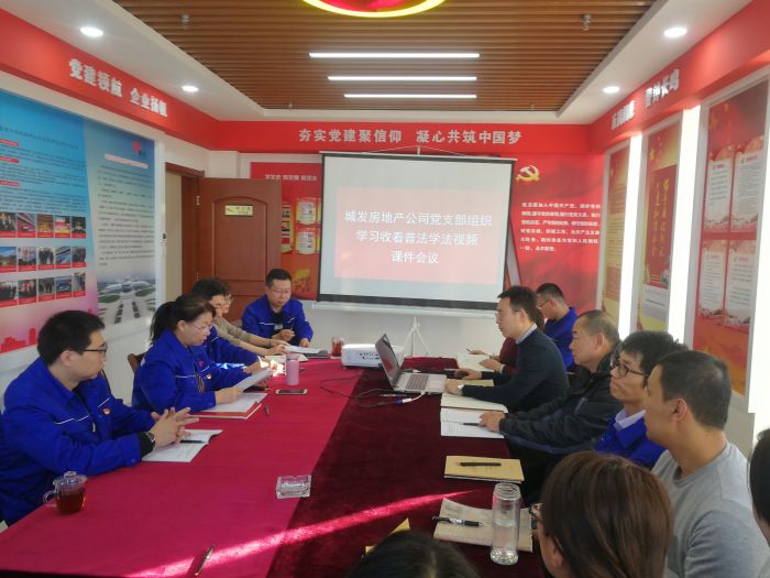 11月22日,房地產(chǎn)公司黨支部組織公司全體黨員、干部職工16人在城發(fā)集團(tuán)11樓黨員之家學(xué)習(xí)收看普法學(xué)法視頻課件。
