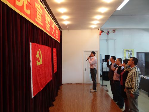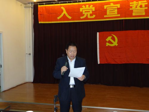 會場肅穆莊嚴,主席臺正中懸掛著中國共產(chǎn)黨黨旗。在雄壯的《國際歌》聲中,儀式拉開了序幕,四名預(yù)備黨員在黨小組長的帶領(lǐng)下,緊握右拳,面對黨旗莊嚴的進行了宣誓,表達了為共產(chǎn)主義事業(yè)奮斗終生的決心。儀式結(jié)束后,預(yù)備黨員代表張學文進行了發(fā)言,表達了能成為中國共產(chǎn)黨一員的激動和光榮,同時也深切感受到了責任感和使命感,今后要時刻以黨員標準嚴格要求,努力工作,堅定信念,為黨的事業(yè)努力奮斗,再立新功。