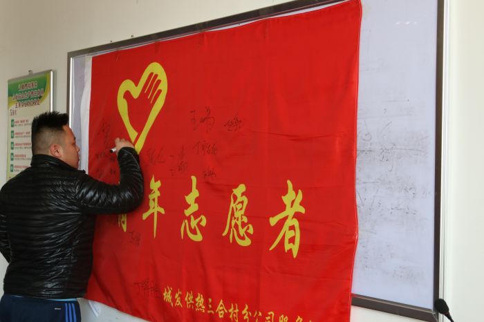會(huì)后,團(tuán)支部組織全體團(tuán)員青年開(kāi)展了“我與志愿者旗簽名合影”活動(dòng)。文/王藝 圖/戈鐵峰
