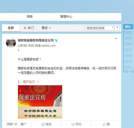 此外,公司還充分運(yùn)用電子顯示屏、微博等媒介宣傳、普及保密法律法規(guī),把保密和密碼宣傳教育工作延伸到廣大群眾中去,努力樹立保守國家秘密人人有責(zé)的意識和國家觀念。